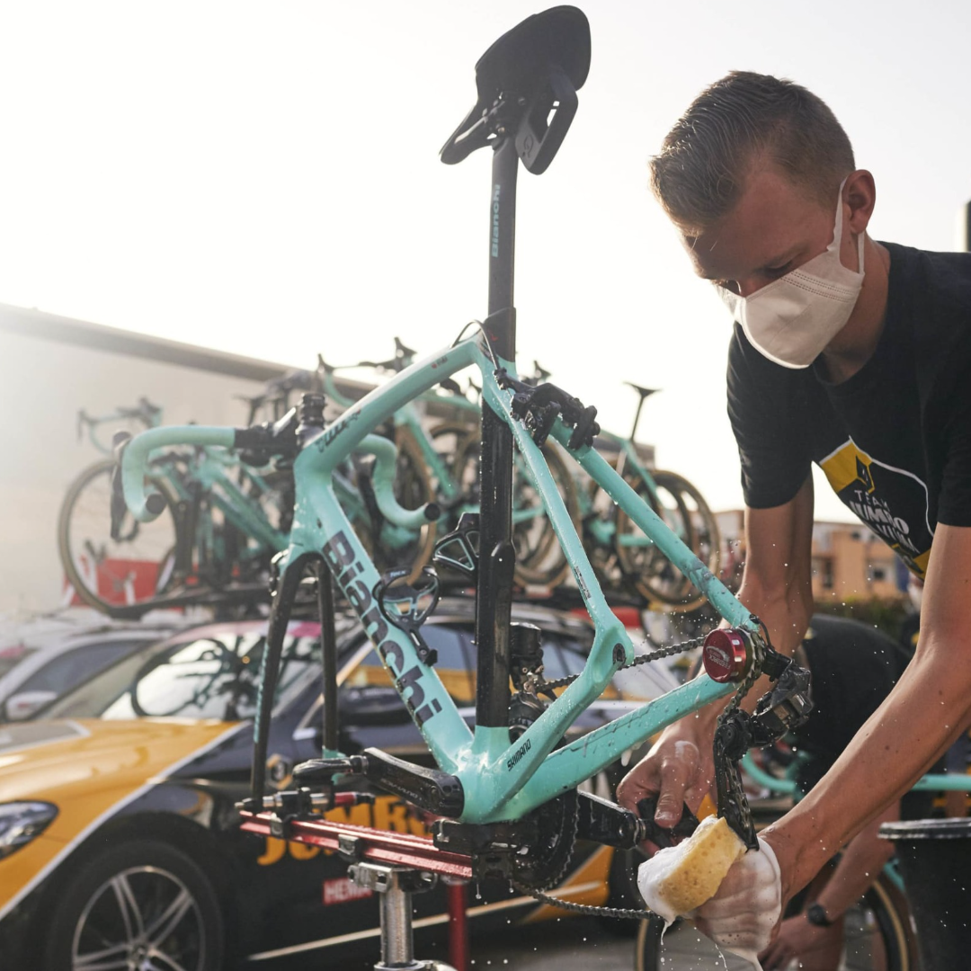Team Jumbo-Visma and Dynamic Bike Care work closely together to develop and improve products. A main focus area is the development of a new and innovative lubricant that makes the drivetrain extremely efficient whilst saving important watts. A very intense process that can lead to savings of up to 11 watts compared to other lubricants.