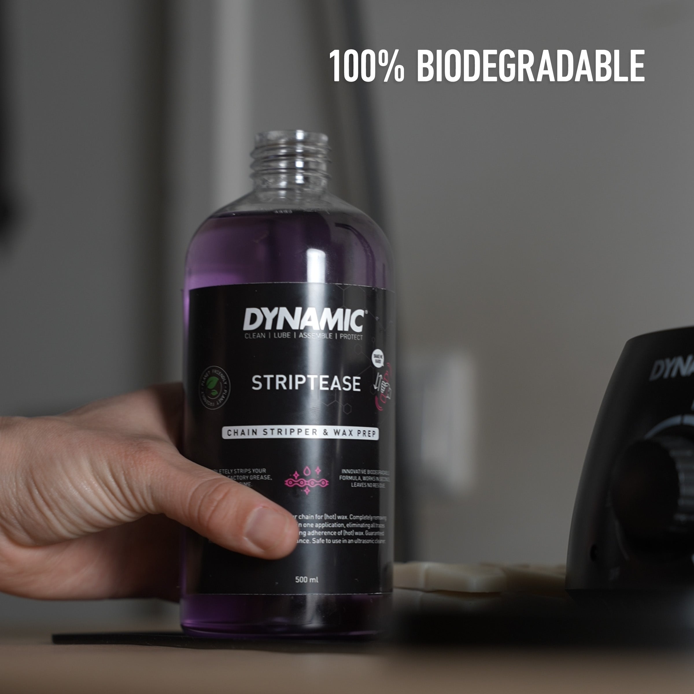 Dynamic Striptease sorgt dafür, dass deine Kette perfekt für jedes Wachs vorbereitet ist, besonders für Heißwachs. Die biologisch abbaubare Formel entfernt alle Fabrikfette, Öle, Schmutz und altes Wachs und hinterlässt die Kette sauber und bereit für eine optimale Schmierung.