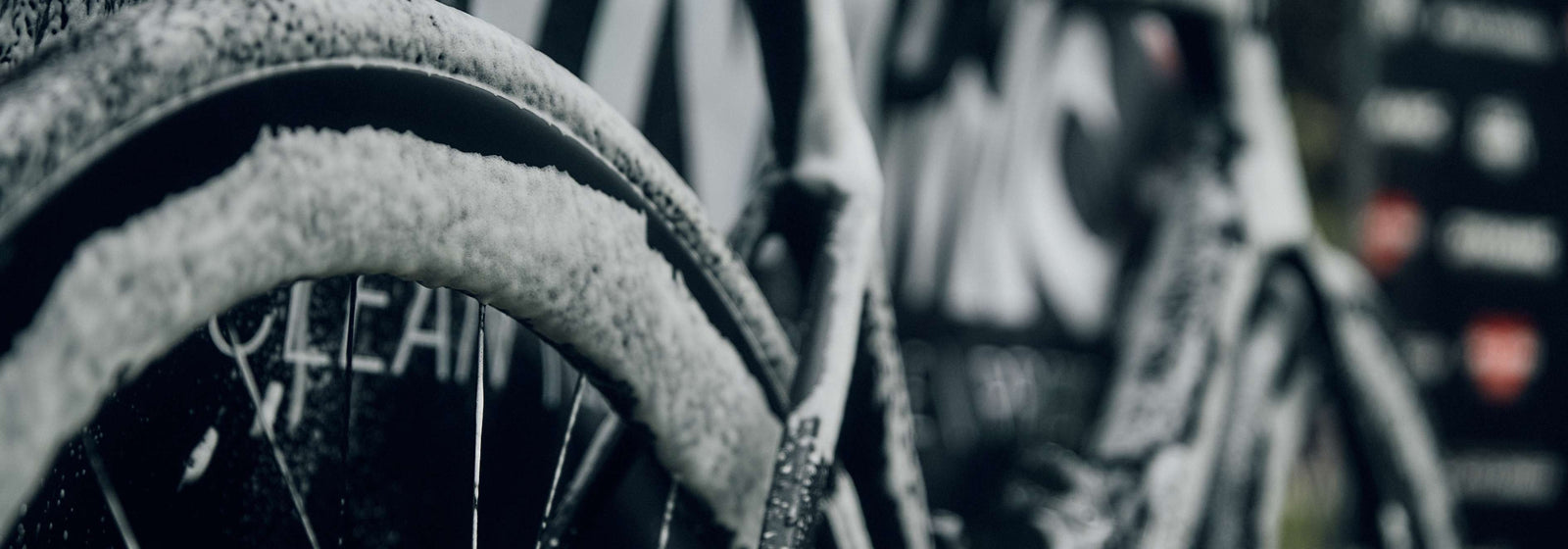 Pendant ce temps, tu peux nettoyer ton cadre avec un mélange de savon Badass Bubbles, ou vaporiser Bio Filth Fighter ou Dirt Destroy sur ton cadre et laisser agir pendant 2 à 3 minutes. Utilise la So Long Brush ou la Cone Brush pour nettoyer les zones difficiles d'accès. Tu peux nettoyer le cadre et les roues avec le Microfibre Bike Cleaning Glove ou la Soft Washing Brush.