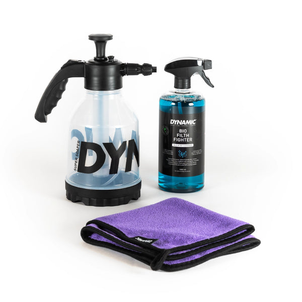 Solo necesitas unas pocas bombas para cubrir tu bicicleta con una capa uniforme de espuma. La espuma desprende la suciedad y el barro de la bicicleta, haciendo que la limpieza sea mucho más fácil. Usa un cepillo o un guante de limpieza para las zonas de difícil acceso y deja tu bicicleta impecable.