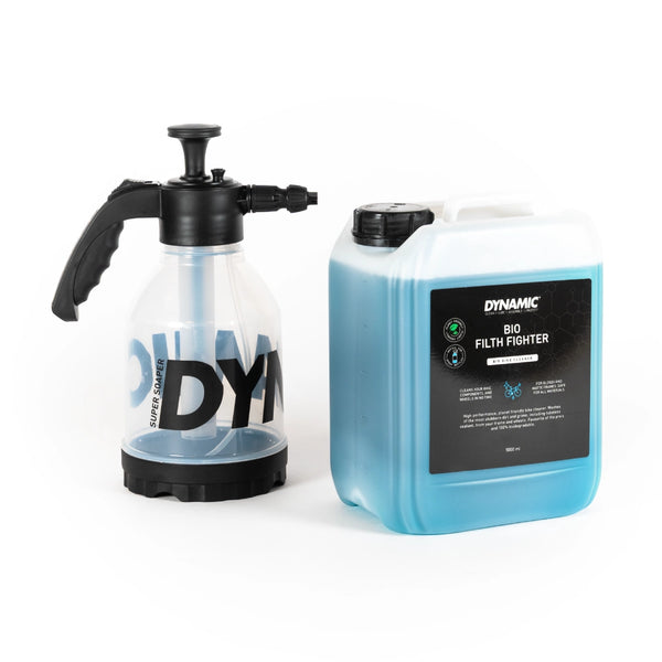 El Super Soaper tiene un amplio depósito de 1,5 litros y una boquilla a prueba de fugas, lo que te permite cubrir fácilmente y con precisión toda tu bicicleta. Es recargable y está hecho de plástico duradero, lo que te permite limpiar durante más tiempo y ser más respetuoso con el medio ambiente.