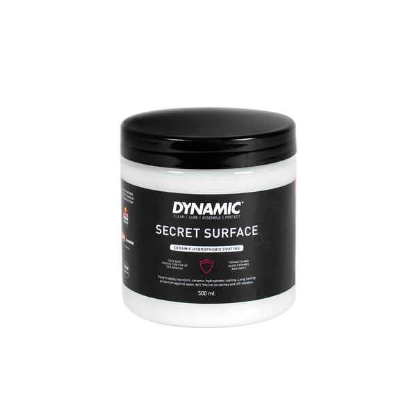 Secret Surface est un revêtement céramique hydrophobe pour vélos et pièces. Le gel de revêtement crée une couche céramique haute performance qui garantit une protection durable. Il protège votre vélo contre l'eau, la saleté, le sel, les micro-rayures et les rayons UV. Il maintient votre cadre et vos pièces dans un état d'usine et facilite grandement le nettoyage!