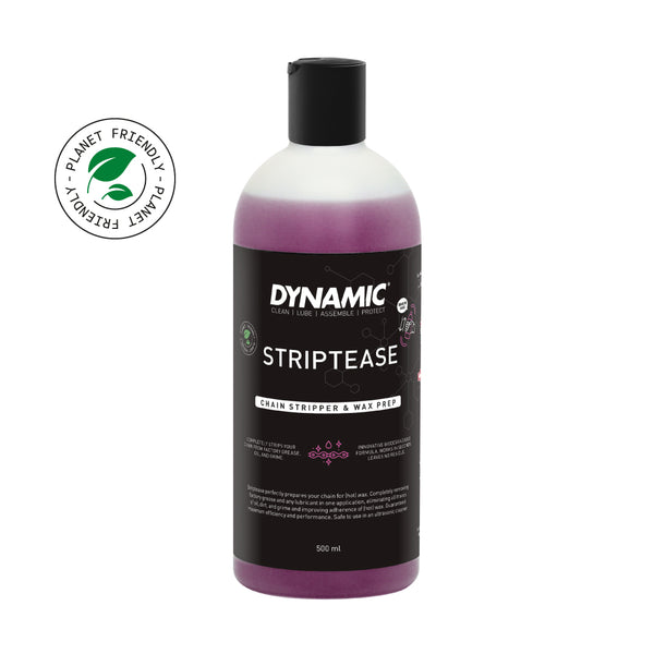 Dynamic Striptease garantit que votre chaîne est parfaitement préparée pour toute cire, en particulier la cire chaude. Sa formule biodégradable élimine toutes les graisses de fabrication, l'huile, la saleté et l'ancienne cire, laissant la chaîne propre et prête pour une lubrification optimale.