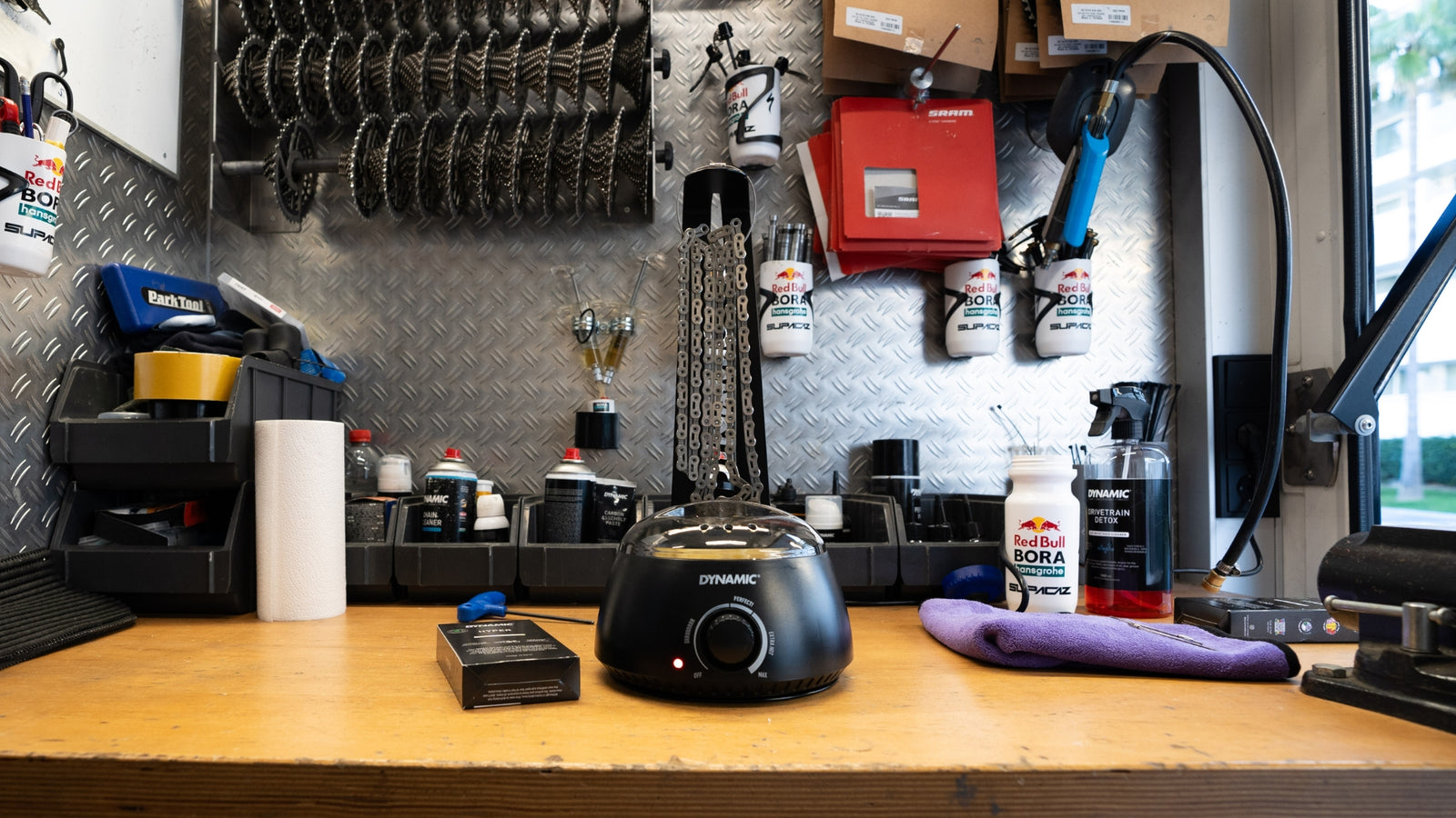 Dat is veranderd. Tegenwoordig biedt bijna iedere fabrikant van bike care-producten wax aan, en talloze bedrijven zijn ontstaan die het waxen als hun belangrijkste focus hebben. De markt is geëxplodeerd. In essentie zijn er twee soorten producten: hot waxen en drip waxen. Hot waxen moeten worden gesmolten, en de ketting moet worden gedemonteerd voordat deze in de wax wordt gedompeld, wat het proces tijdrovend maakt. Drip waxen daarentegen worden direct uit de fles aangebracht, net als olie. Volgens fabrikanten presteert hot wax beter. Omdat drip wax echter gemakkelijker aan te brengen is, lijkt de markt steeds meer in die richting te verschuiven. Beide methoden kunnen ook worden gecombineerd. Bijvoorbeeld, je kunt drip wax opnieuw aanbrengen op een ketting die al met hot wax is behandeld, voordat je de ketting na meerdere ritten weer in de hot wax doopt voor een grote onderhoudsbeurt.