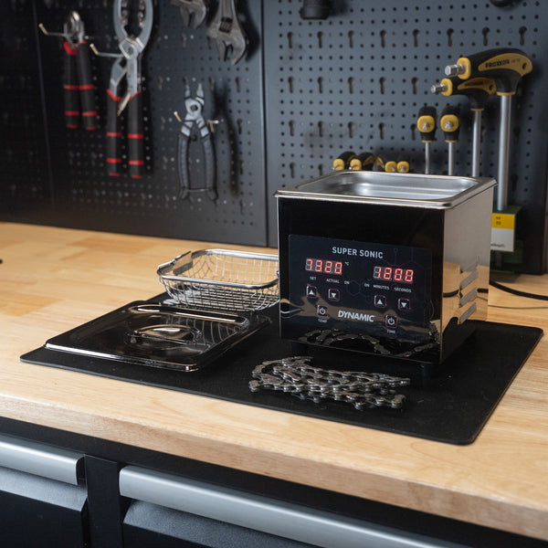 Ultrasoon reinigen is de meest efficiënte en effectieve manier om je ketting tot diep in de kern te reinigen. De stabiele en nauwkeurige ultrasone trillingen op 40 kHz vormen miljoenen microscopische bellen die tegen de schakels imploderen en daarmee vuil, wax en olie uit alle kieren verwijderen. Het ingebouwde verwarmingselement verwarmt de vloeistof tot 80 °C, waardoor het reinigingsproces nóg effectiever wordt en zelfs hardnekkige resten geen kans krijgen. Met de digitale knoppen stel je temperatuur en tijd precies in. Het reservoir is met 1,3 liter groot genoeg om je ketting volledig onder te dompelen zonder te veel vloeistof te vereisen. De Super Sonic is opgebouwd uit hoogwaardige, duurzame componenten die zelfs bij intensief gebruik topprestaties blijven leveren.