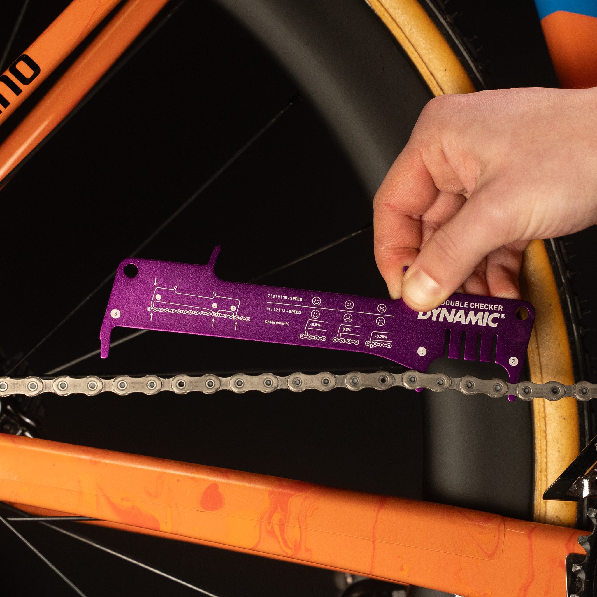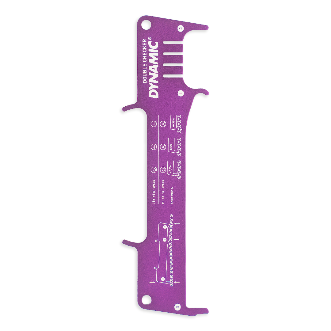 With the Double Checker, you know exactly how worn your chain and rotors are. The Double Checker measures true pin wear, which is the most relevant measurement to have. Separating pin wear from roller wear gives a more accurate result, enabling you to know the exact state of your chain. The rotor check, built-in chain hook and ruler make the Double Checker an unmissable tool in every cyclist’s toolkit.